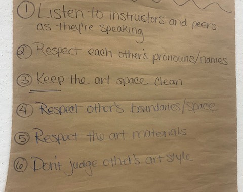 What was once a Studio Facilitator role, then a META role has evolved into a year-long training program. "The concept of this program started in 2020 at the peak of the pandemic," shared Victoria Timpo (pictured left), Manager of Emerging Artist Pathway Programs. "Marwen was transitioning to virtual arts experiences at that moment in time, and we developed a program where a teaching artist cohort would support young people online." The year-long, part-time program is designed to equip participants with the skills, knowledge, and experience necessary to become effective teaching artists. Participants receive professional development sessions led by seasoned educators and artists, including pedagogical approaches, classroom management, and youth-focused curriculum design.